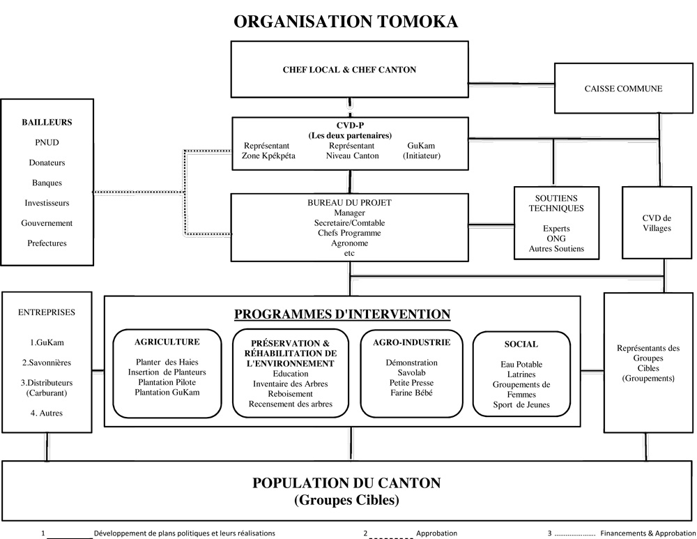 Vu l’isolement du Canton, le manque de télécommunication, de moyen financier et de structure administrative, GuKam a accepté coopérer avec la Communauté en qualité de partenaire et de préfinancer les activités préparatoires et préliminaires du Projet. Ceci est reflété dans le format organisationnel de Tomoka. Ensemble, les deux parties prendront contact avec les autorités nationales et organisations impliquées dans la promotion du développement rural durable, du Système Jatropha, du Financement,  et domaines connexes. Nous espérons que ce site web sera un medium pour atteindre ces instituions et susciter leurs intérêts pour ce Projet.
